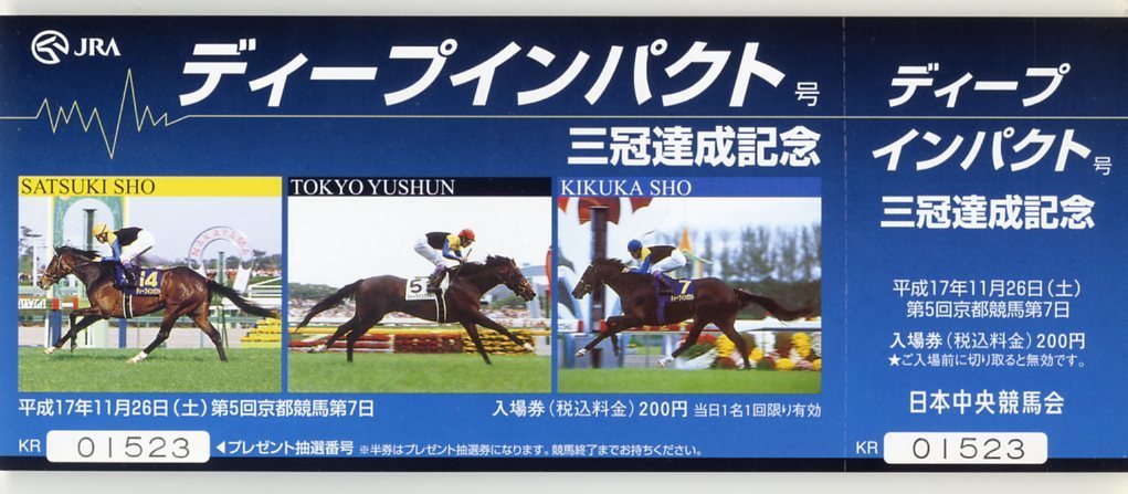 - ★ディープインパクト JRA 三冠達成記念 記念入場券 京都競馬場版 平成17年 武豊 三冠馬 顕彰馬 競馬 極美品 即決