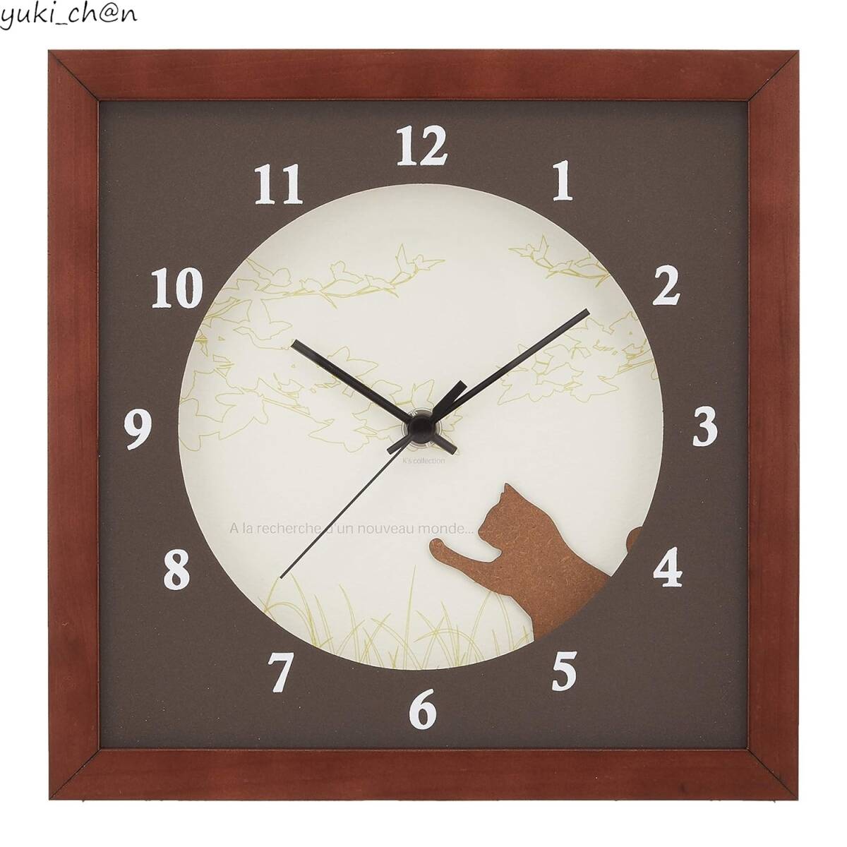 - 猫が顔をのぞかせるインテリア時計 ブラウン 壁掛け時計 Cat フレーム時計 四角形 ハンドメイド 22cm バッテリー式 インテリア