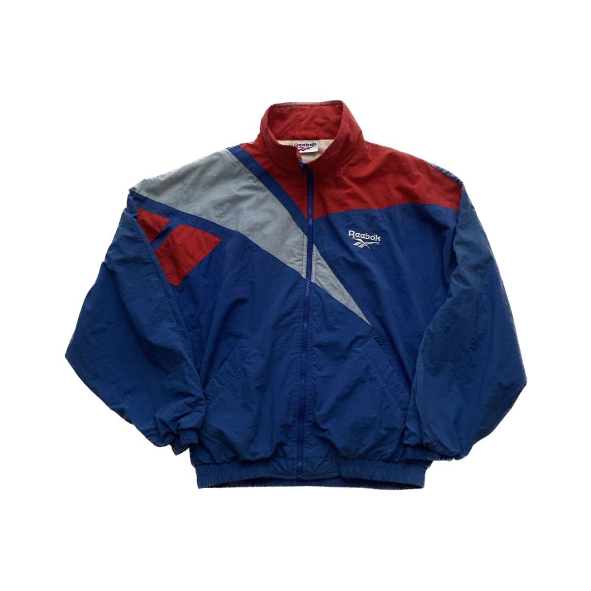 - 【好配色】90s Reebok ナイロンジップアップジャケット L 立ち襟 短丈 リーボック ヴィンテージ ビンテージ スポーツ USA アメリカ 古着