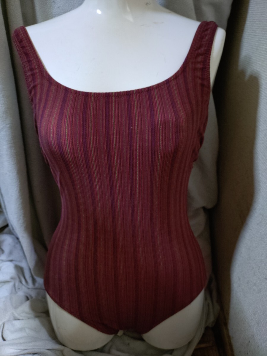 - M3750◆nanno◆セレブなレッド系ストライプ柄ワンピース水着◆9М