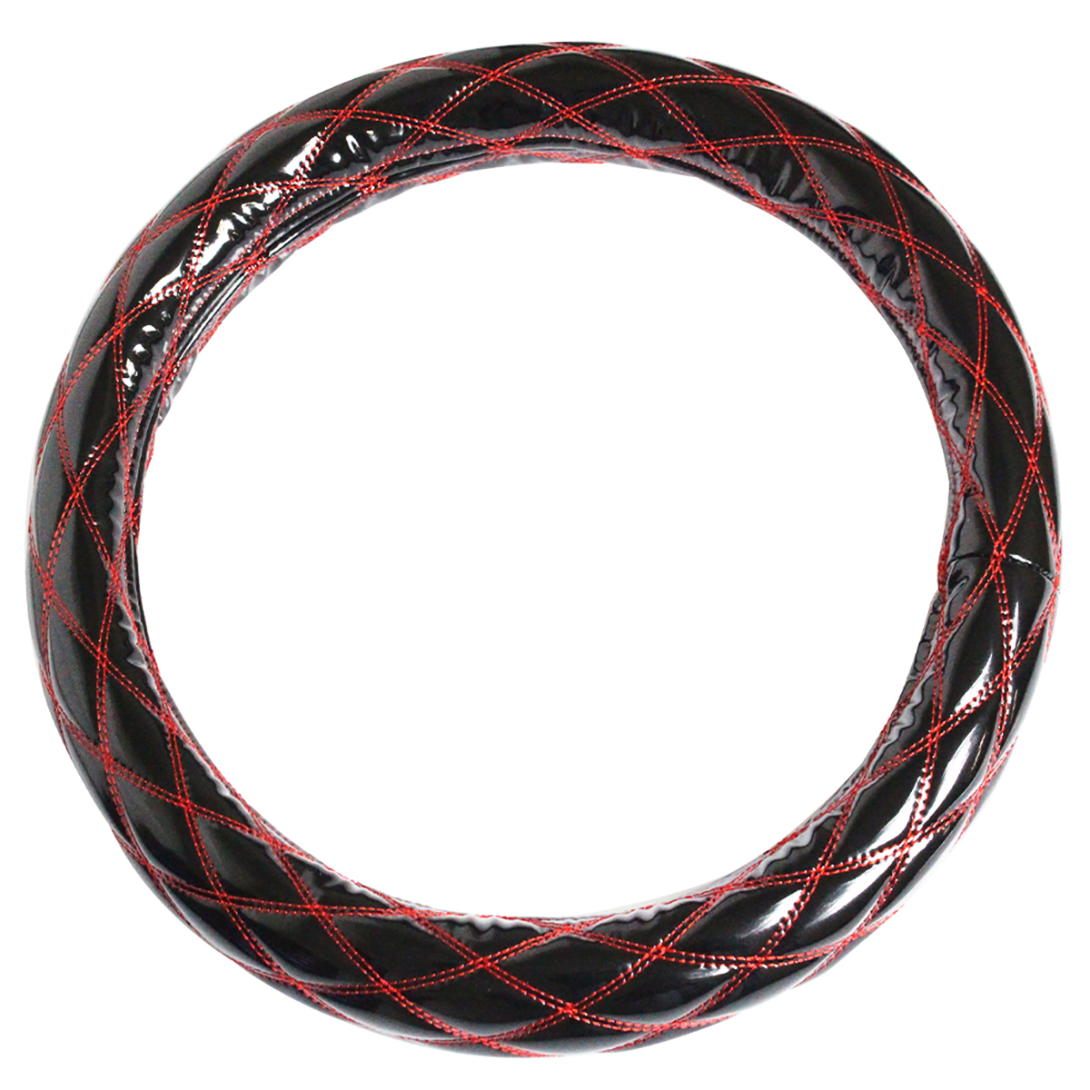 > 極太 太巻き エナメル ダブルステッチ ダイヤカット ハンドルカバー 艶ブラック×レッド Sサイズ いすゞ 2t NEWエルフ/超低PMエルフ