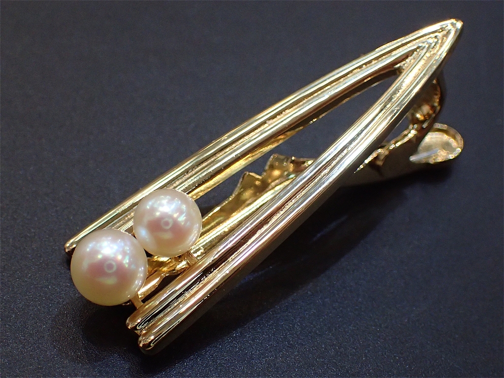 - ■K.MIKIMOTO K14 あこや真珠 クリップ■中古 美品■ミキモト■バネ式クリップ■
