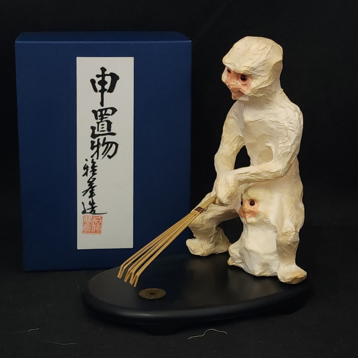 - 加藤雅峯 造 和紙重貼 申 置物 未使用箱入 /猿/さる/干支/陶磁器/