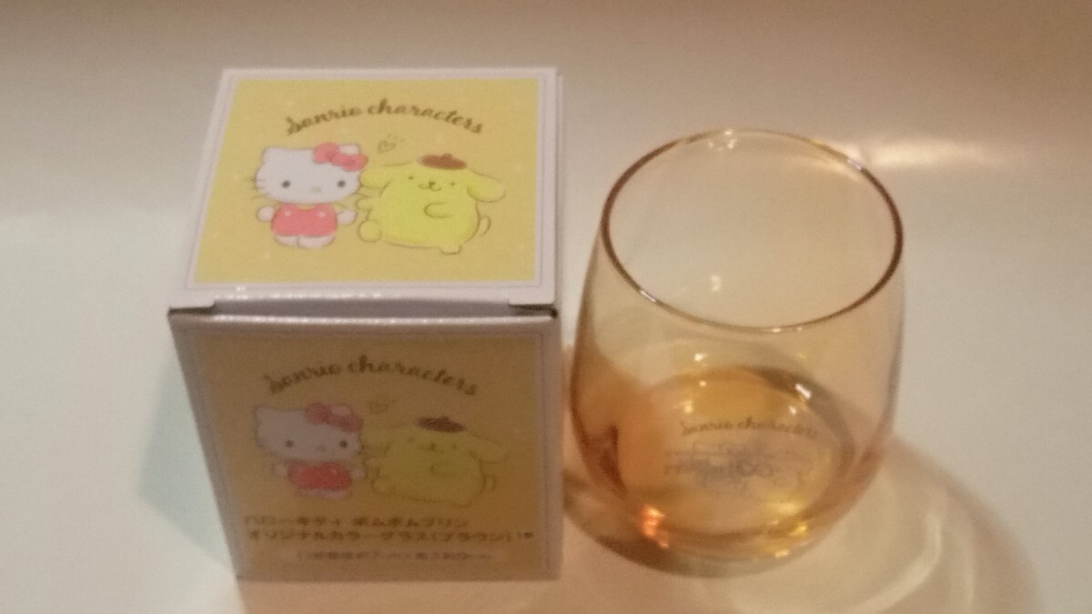 > 【未使用品】ハローキティ ポムポムプリン オリジナルブラウンカラーグラス ローソン100 プレゼント非売品