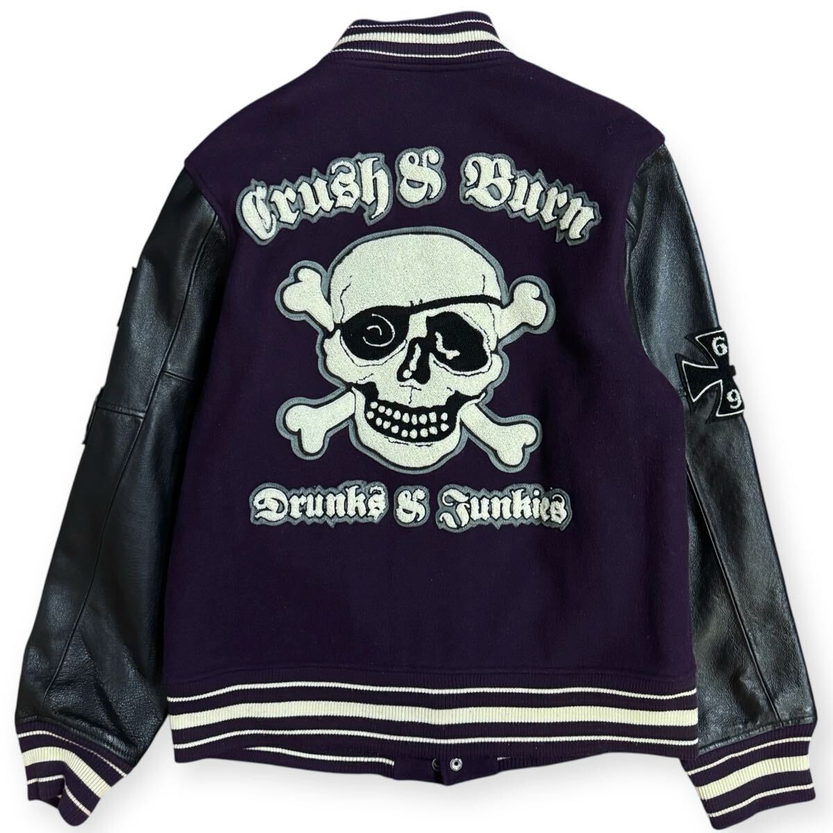 - 雰囲気抜群 HOUSTON フルデコ 袖革 スタジャン 刺繍ワッペン 髑髏 サイズ40