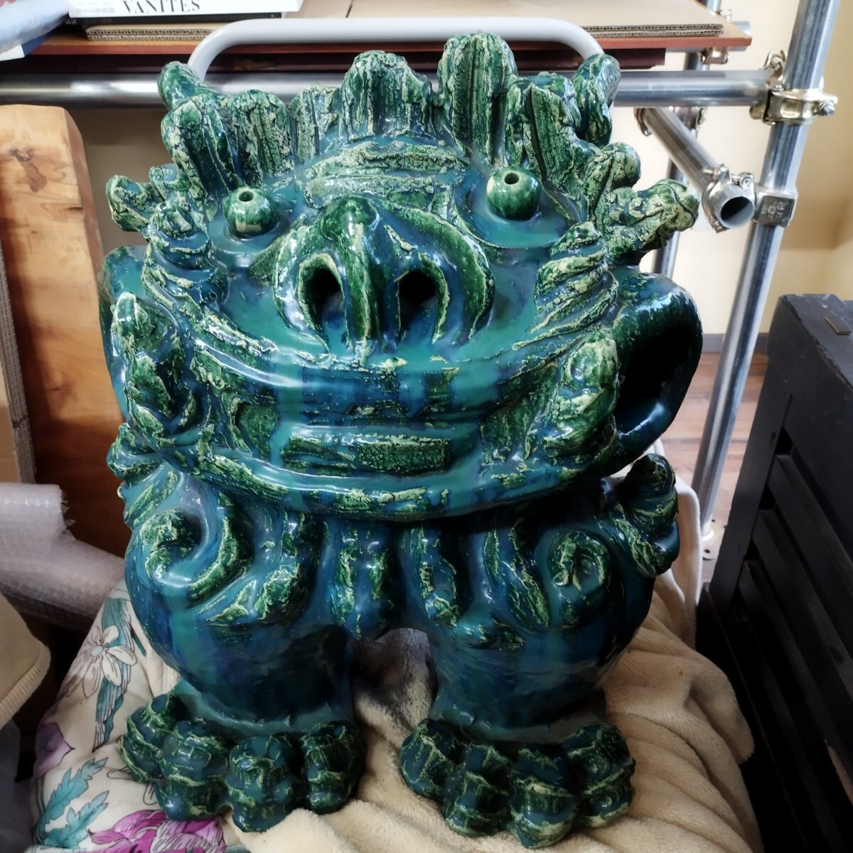 - 手渡し限定 木村芳郎 陶芸 置物 陶刻 獅子 狛犬