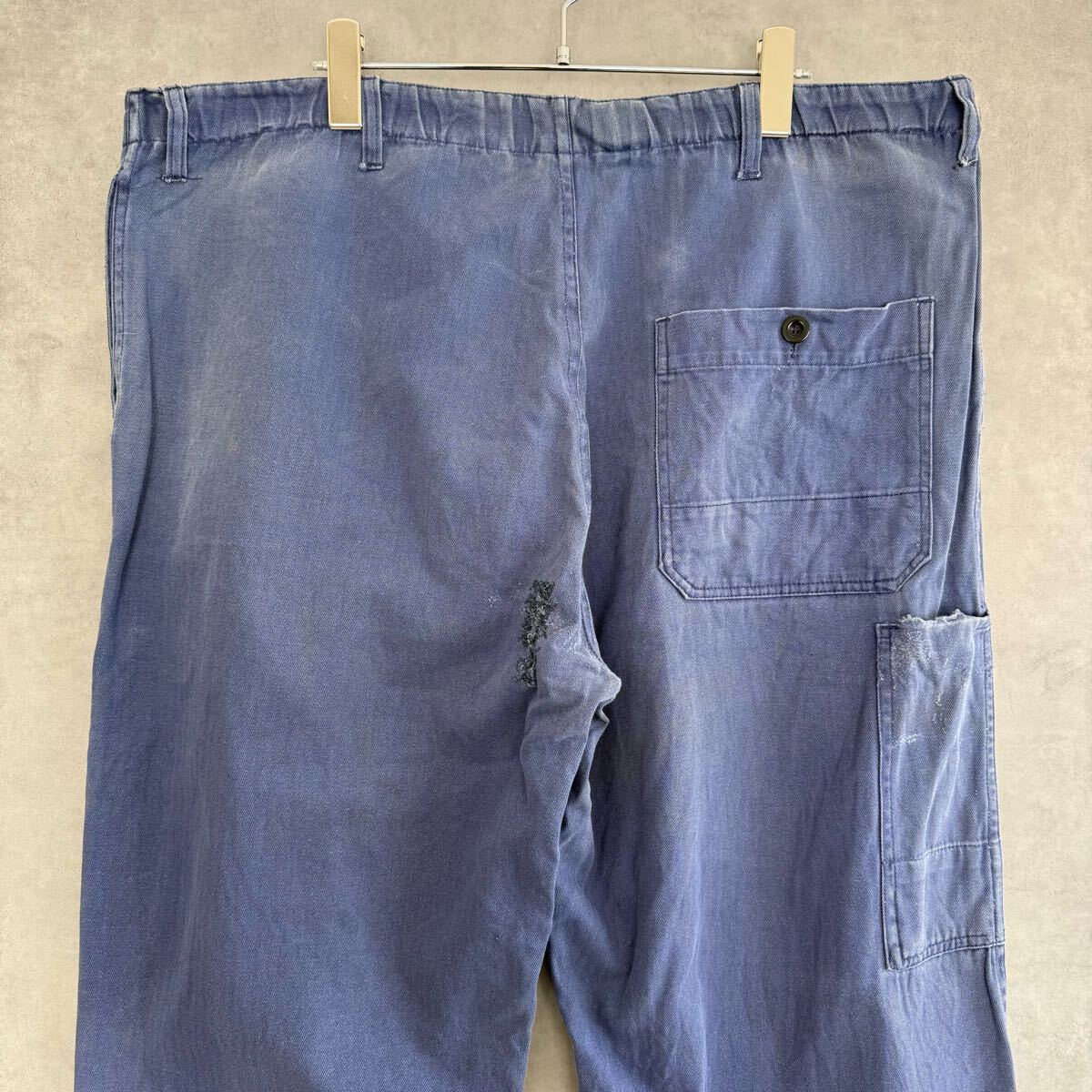 - 60s〜70s ヴィンテージ ユーロワークパンツ ランチパンツ HBT ヘリンボーンツイル 3XL ビッグサイズ VINTAGE フェードネイビー BORO