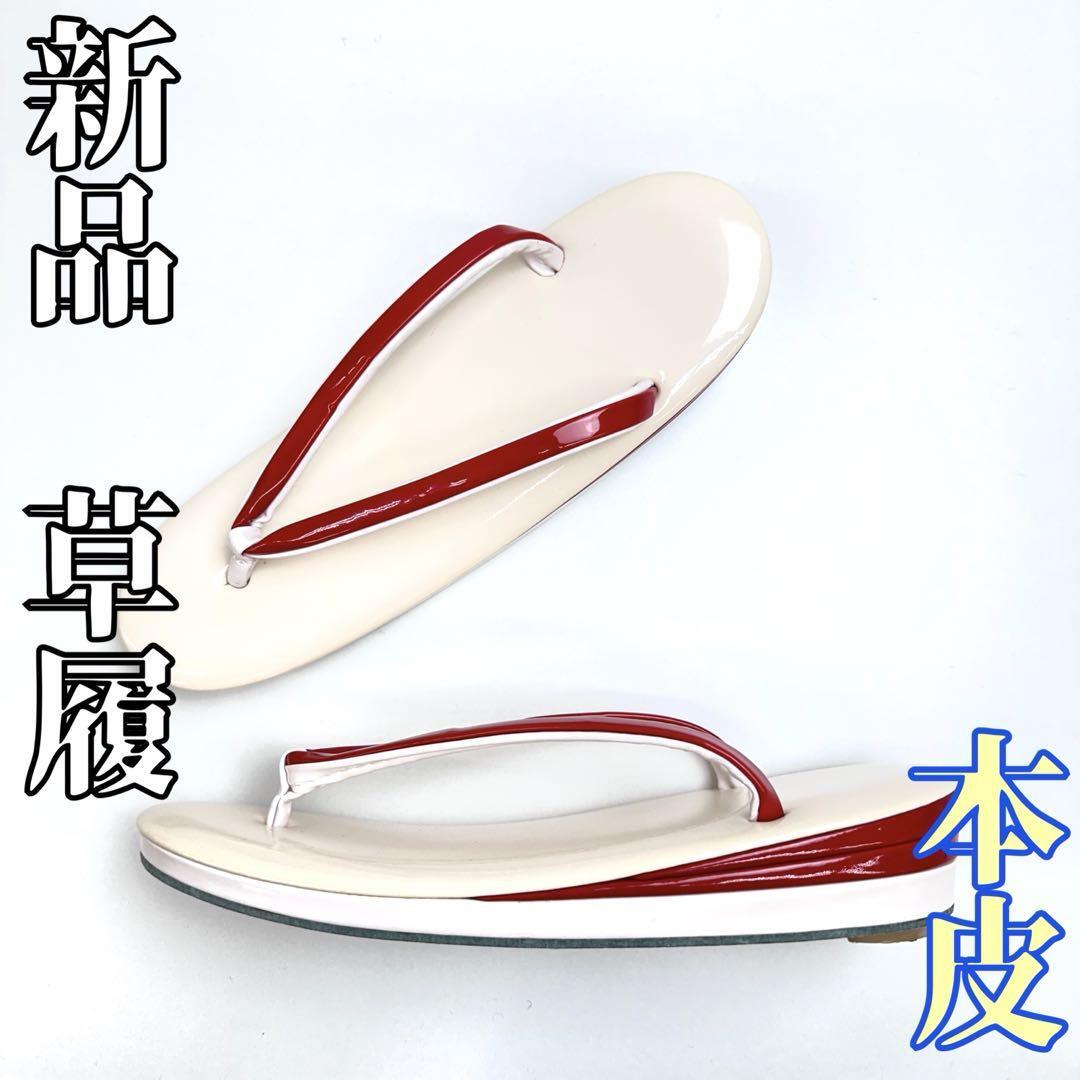 - 【着物と帯 時流】Z25251◆新品 草履◆3枚芯 本皮 ベージュ 赤