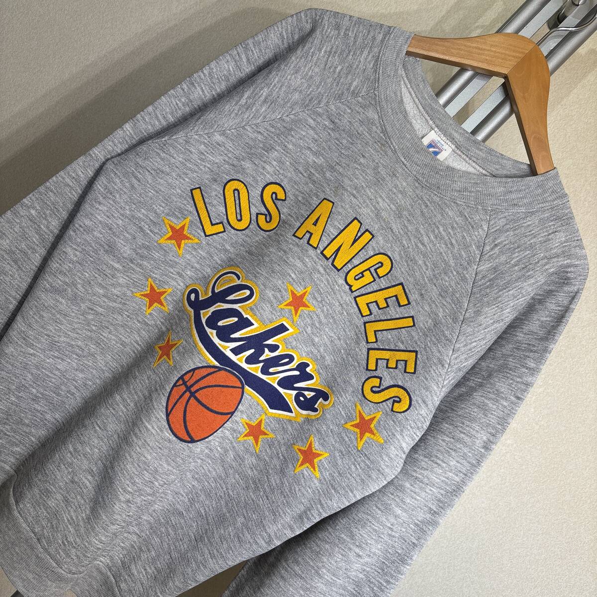 - X371■USA製古着★90s★L.A.Lakersレイカーズ/LOGO7★杢グレー★スエットトレーナー■US L
