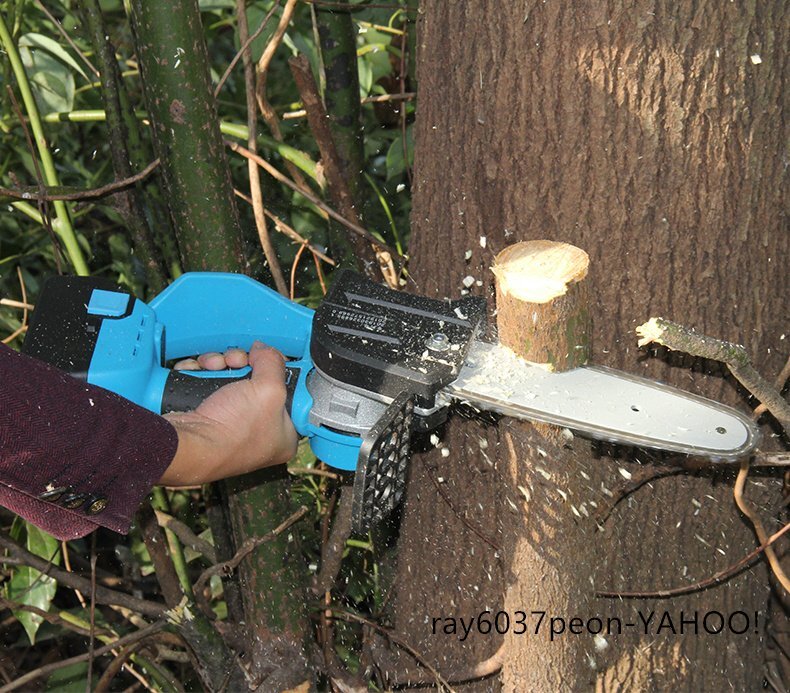 - 片手で軽快!21V 充電式 電気チェーンソー 電動チェーンソー 255mm バッテリ 充電器付 リチウム電池 園芸用 枝切り 枝打ち 伐採 薪作り