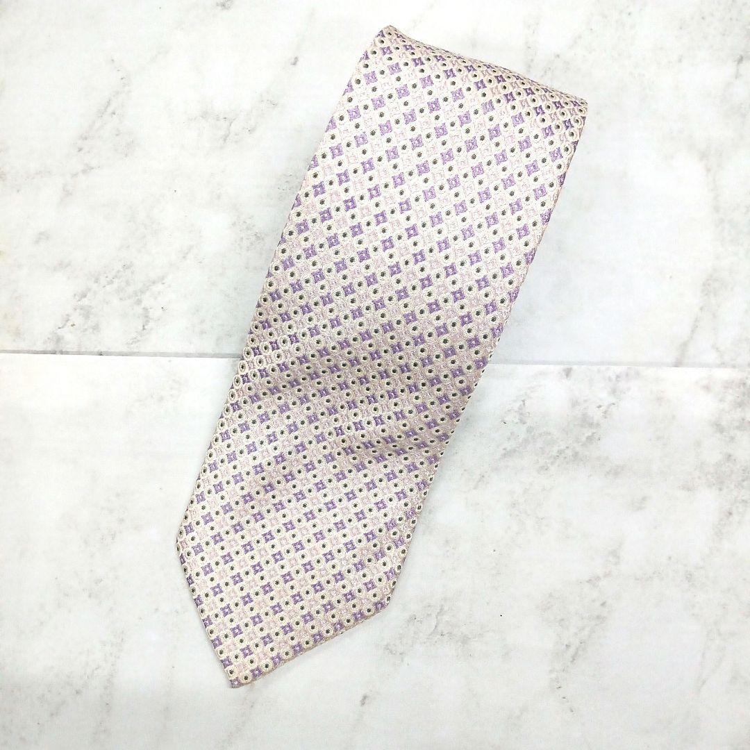 - ヒューゴボス ネクタイ パープル ドット柄 絹 シルク【n165】