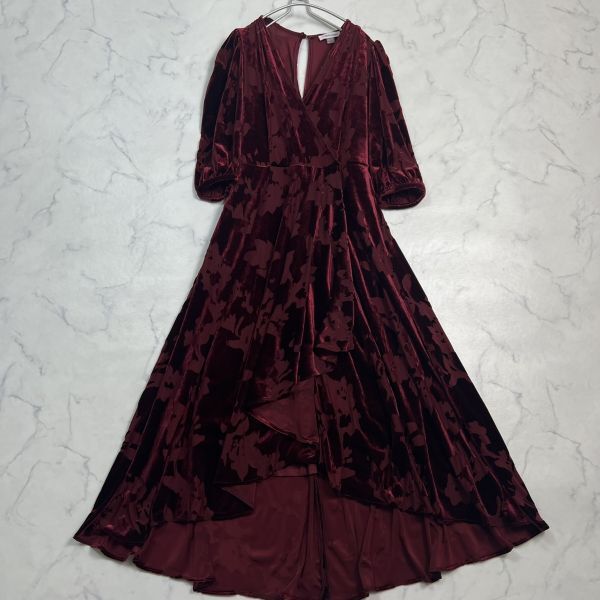 - 極美品カルバンクライン ベロアワンピース パーティードレス ロング 花柄 Aライン S ワインレッド ボルドー Calvin Klein B0421