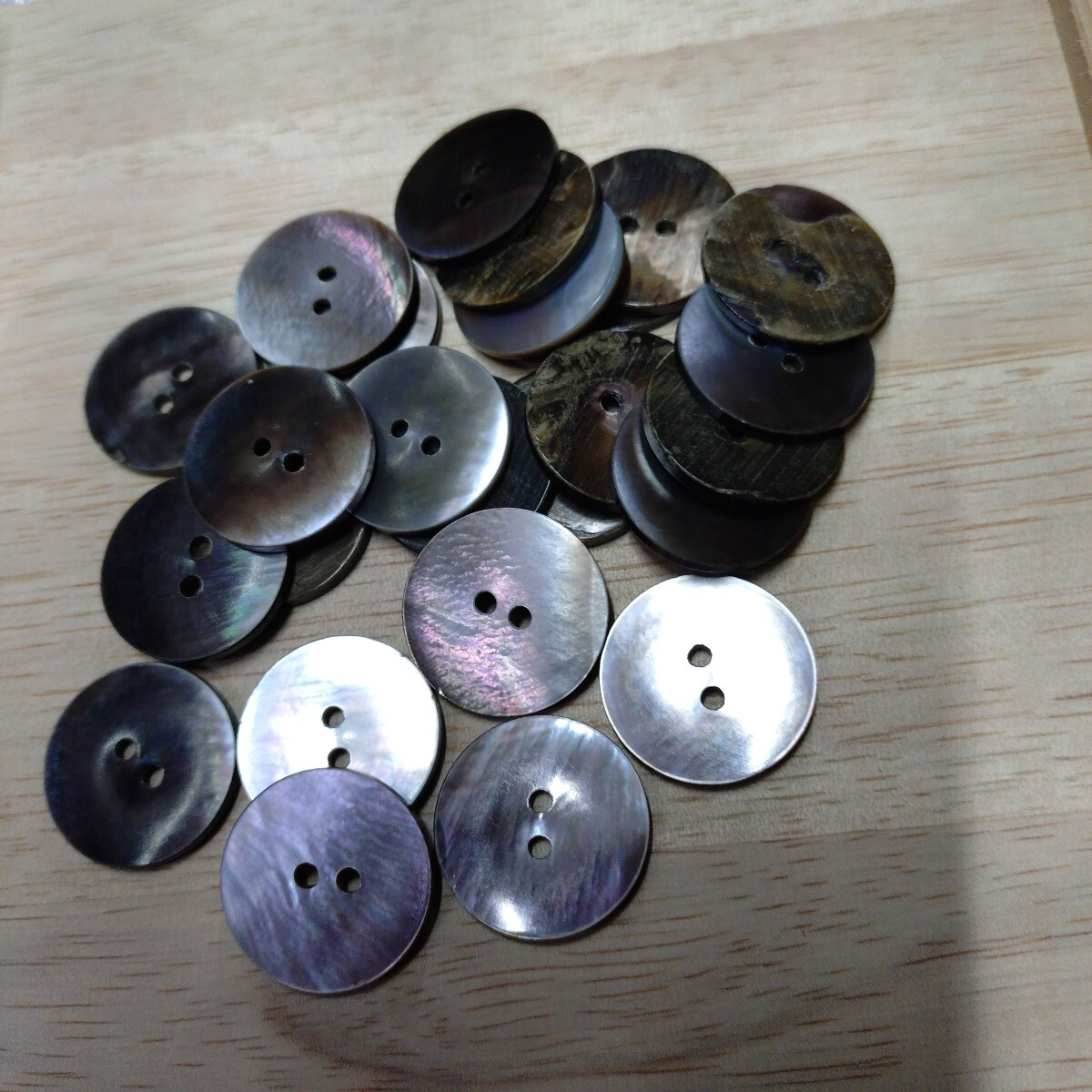 - 黒蝶貝ボタン 25㎜-25個 皿型 2穴