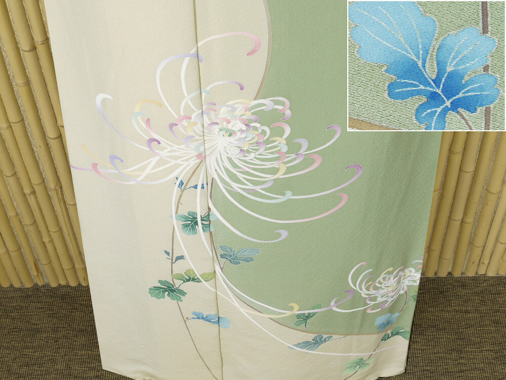 - 【京かんざし】144★訪問着 手描き友禅 丹後ちりめん 乱菊 藤 躾糸付未着用 ロング身丈171 cm裄丈71.5 cm★即決送料無料!