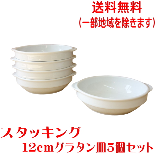 > 送料無料 スタッキング 12cm グラタン皿 5個 セット 小 収納 手付き レンジ可 オーブン対応 食洗機対応 美濃焼 日本製
