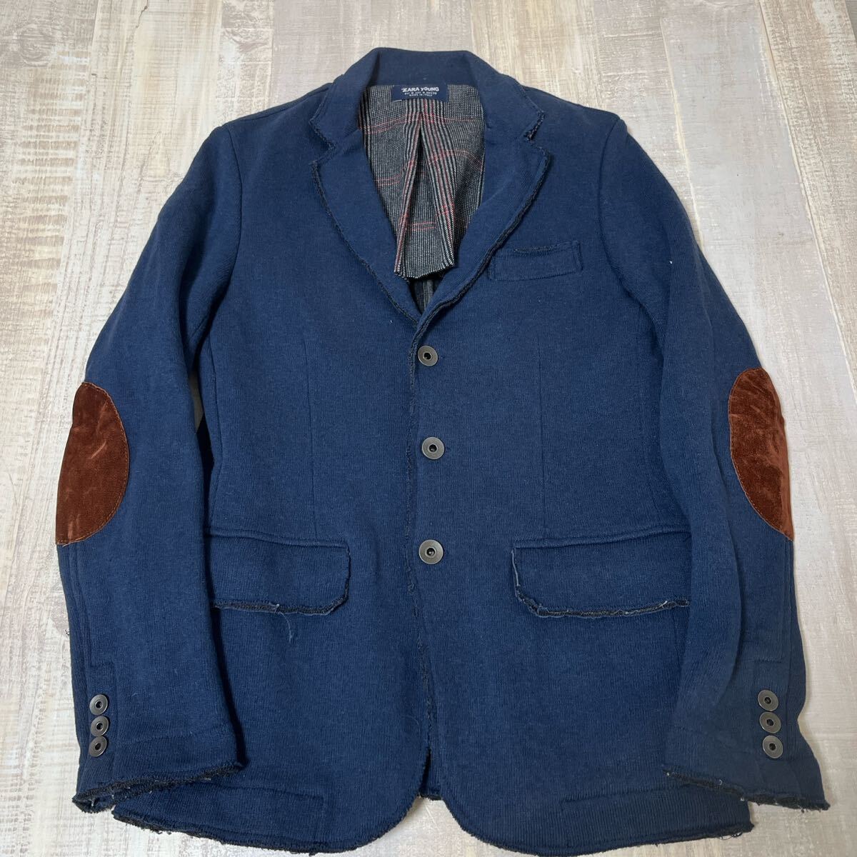 - 【イタリア製 好デザイン 裏地チェック エルボーパッチ】ZARA YOUNG 3B スウェット テーラード ジャケット ザラ ヤング M ネイビートラッド