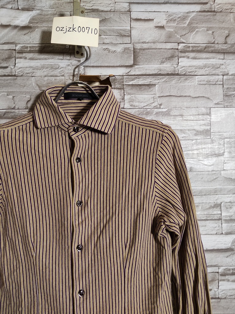 > men's I312 DESIGNWORKS デザインワークス アバハウス ホリゾンタルカラー ストライプ 長袖 シャツ 44 黄土色系