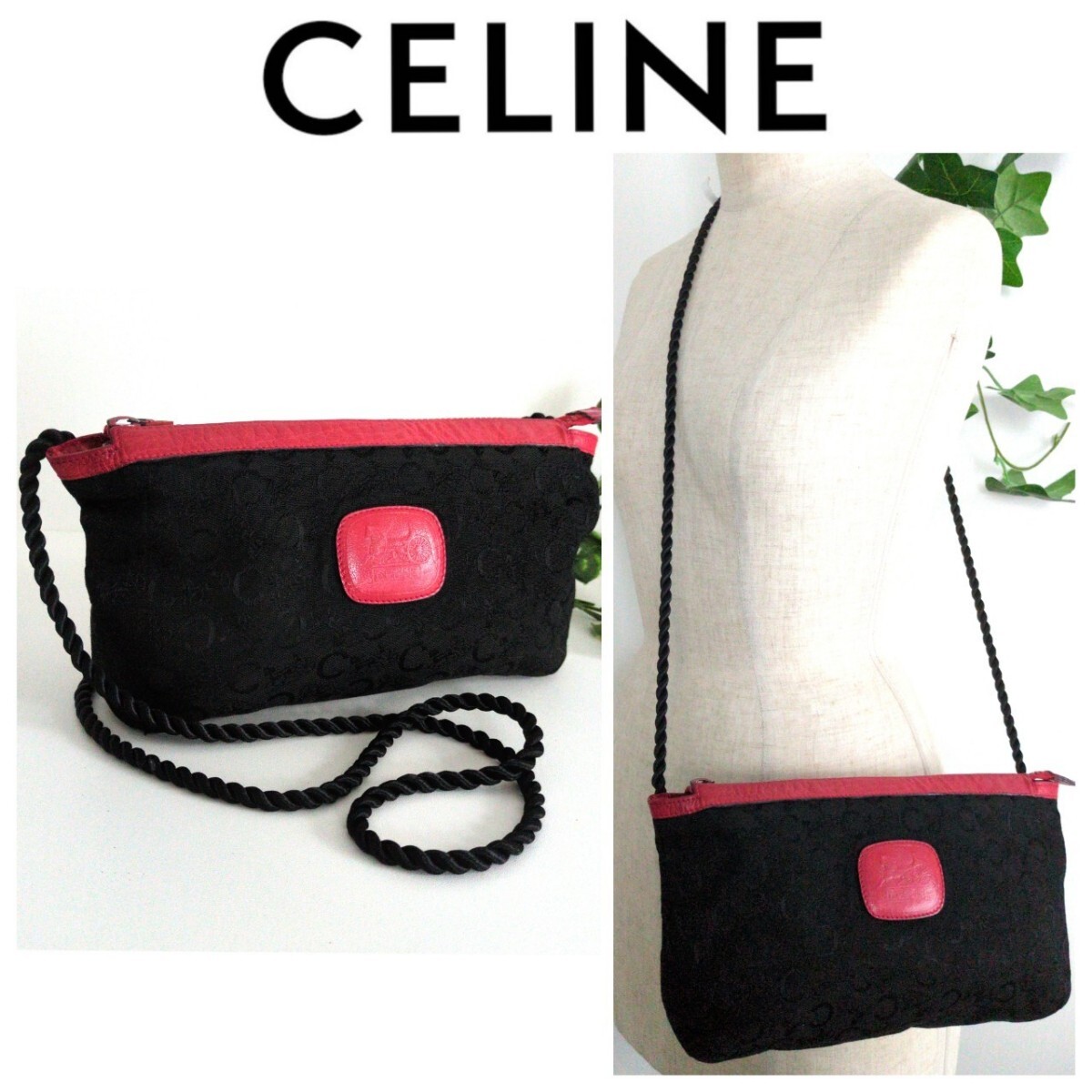 - 良品 セリーヌ OLD ヴィンテージ ショルダーバッグ ポシェット サコッシュ 鞄 ポーチ ボディバッグ ミニバッグ 黒 赤 レディース メンズ
