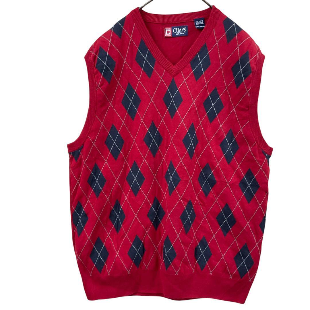 - チャップス メンズニットベスト ダイヤ柄 赤 XXL ゆるだぼ 古着【2420】