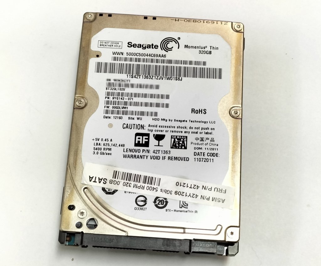 (稼働22315H)IBM Lenovo 42T1210 (Seagate ST320LT020) 320GB SATA 2.5インチ7mm厚 5400rpm ANA7