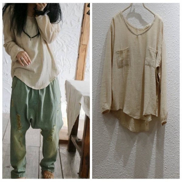 - jm チュニック トップス 純色 柔らかな素材 楽な着心地 軽やか 綿麻混 亜麻色 ゆったり ダル タフ