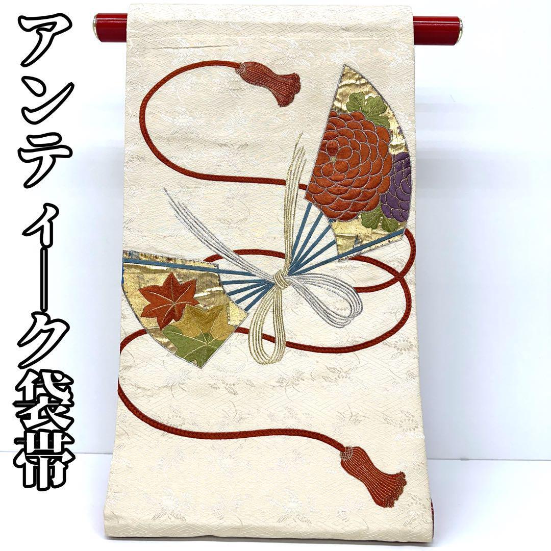 - 【着物と帯 時流】F25293◆正絹 アンティーク袋帯◆大正ロマン 刺繍 扇 楓