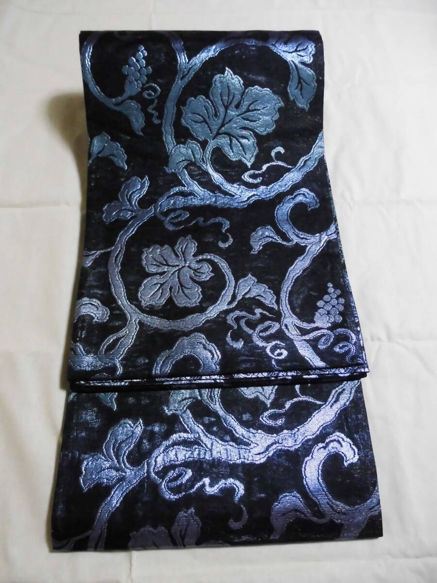 - ぶどう唐草文 宝づくし 全通丸帯(仁右衛門)青 4m50cm さが美購入
