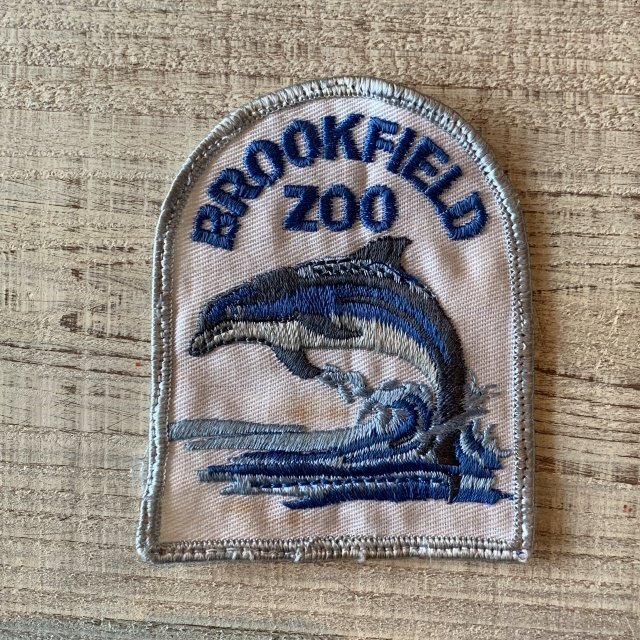 > 【9.5㎝×7.6㎝】BROOKFIELD ZOO イルカ 刺繍ワッペン 白×青■ビンテージ オールド レトロ アメリカ古着 雑貨 動物 パッチ