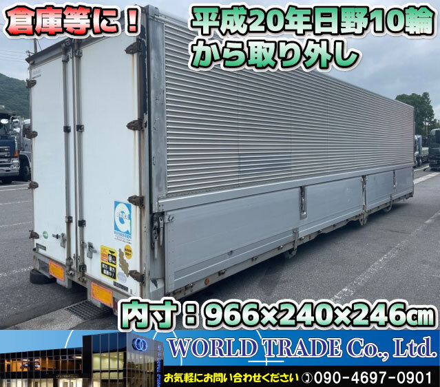 > 【広島発】下取り・ローン受付可 大型ウイング 箱 平成20年 日野 10輪から取り外し 倉庫 内寸:966×240×246㎝