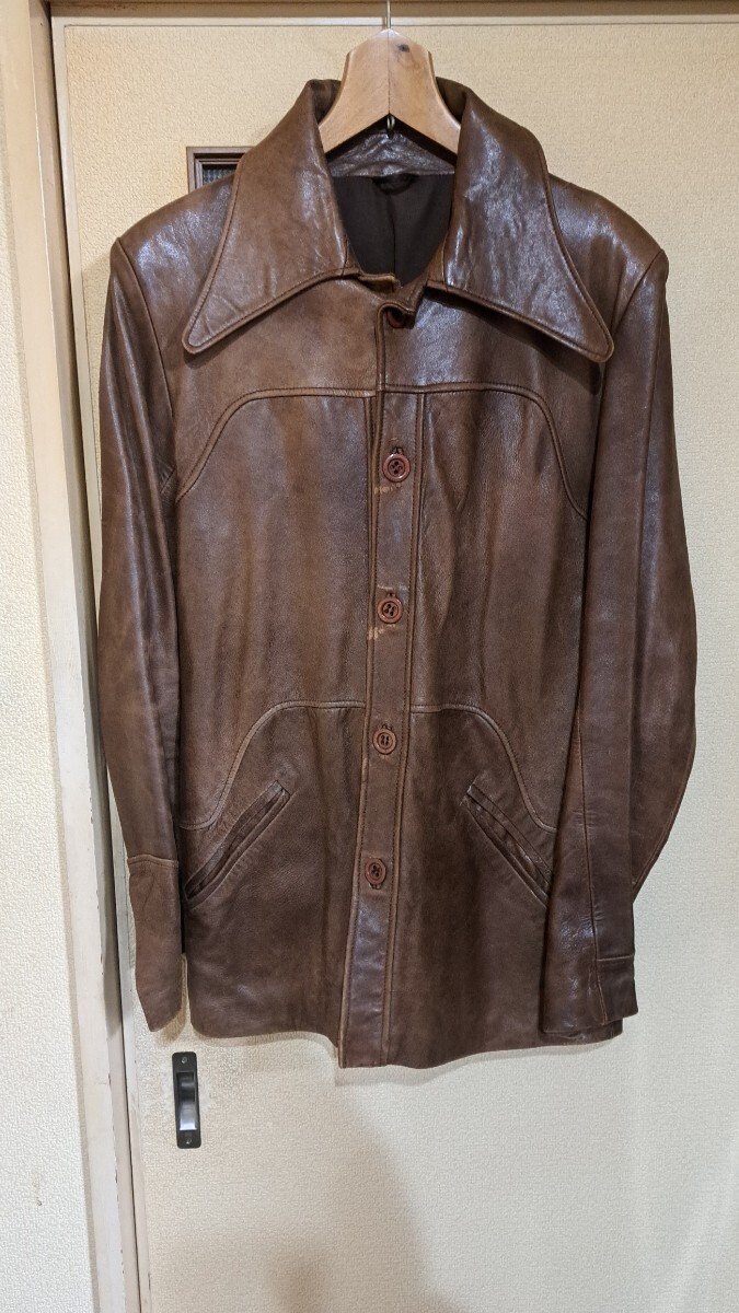 - ヴィンテージ レザージャケット 当時モノ 表記サイズ50 (説明欄実寸あり) デカ襟 ウエスタン系 風合い フェード 雰囲気 70年代 古着 革