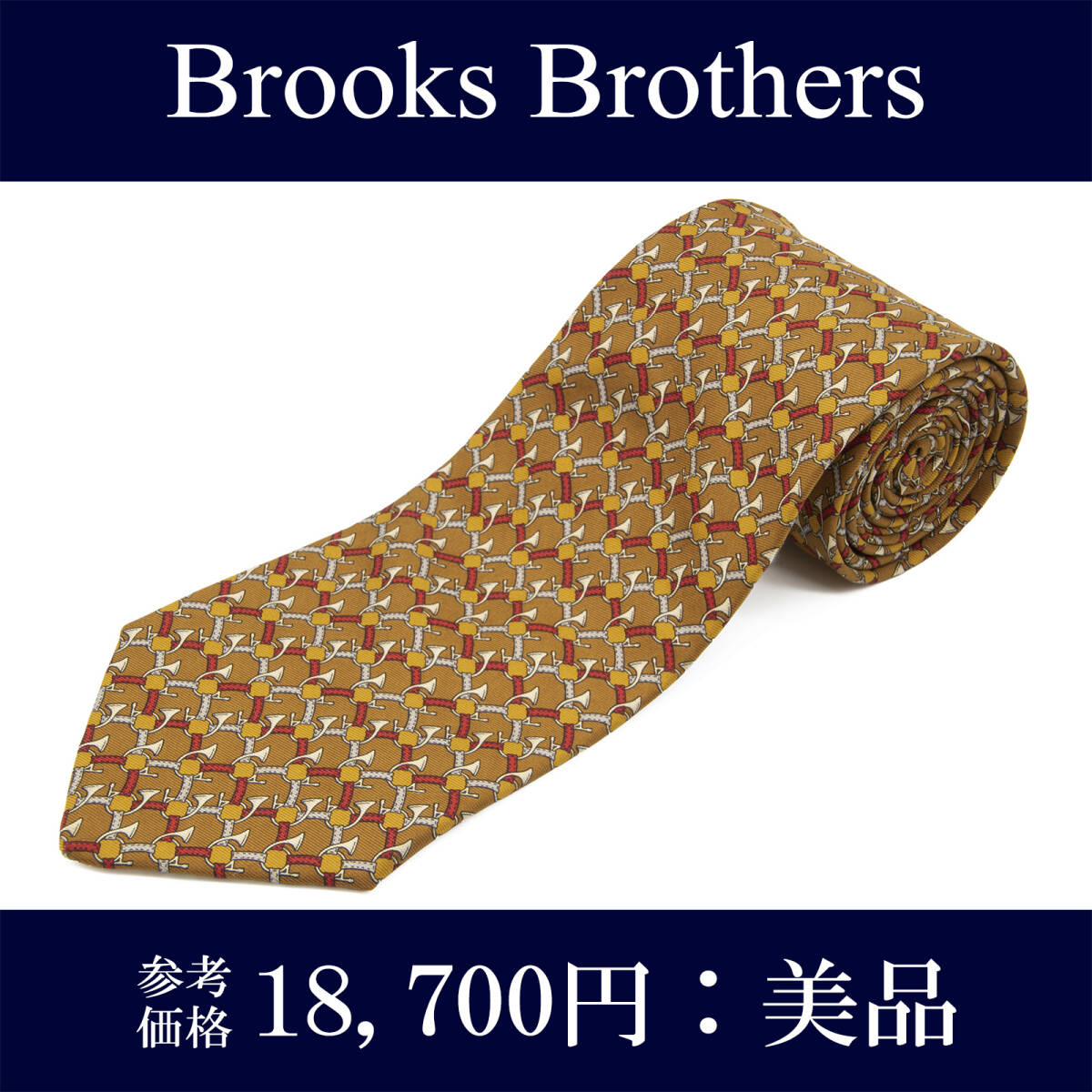 > 送料無料 ブルックスブラザーズ ネクタイ シルク オーカー 赤 ライトグレー ブランド 楽器 ホルン 総柄 マーク 珍しい おしゃれ 綺麗 N606