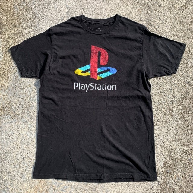 > 【L】「Play Station」プリントTシャツ ブラック 黒■アメリカ古着 プレイステーション プレステ コットン 企業 ゲーム