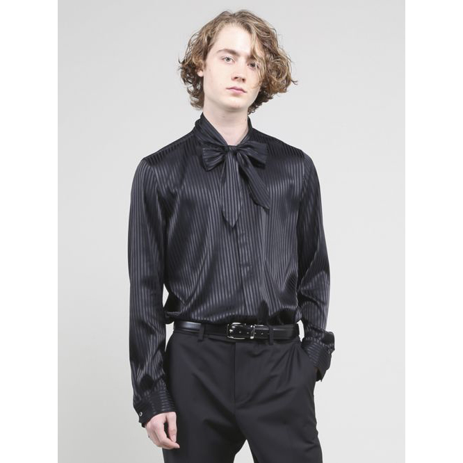 - galaabend 21SS ストライプジャガードストレッチリボンシャツ S 新品同様 定価36,300円 ポリエステル ガラアーベント