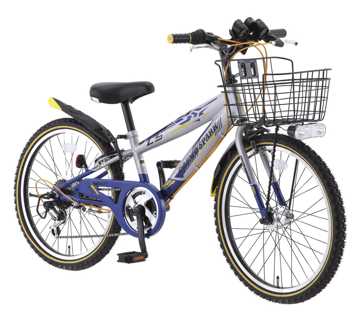 > 新品アウトレット 6段変速LEDオートライト コスモスパーク24インチ シルバー・ブルー