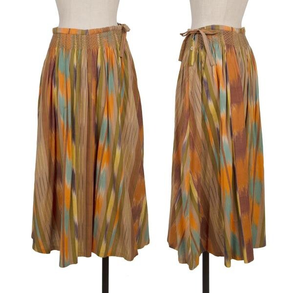 - ケンゾーKENZO ウエスト刺繍マルチストライプフレアスカート カーキ他M