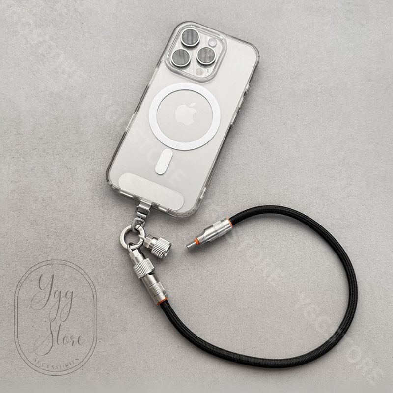 - 充電ケーブル ハンドストラップ ショート 2WAY 手首 落下防止 高速充電 スマホホルダー セット 黒 ブラック Type-C スマートフォン