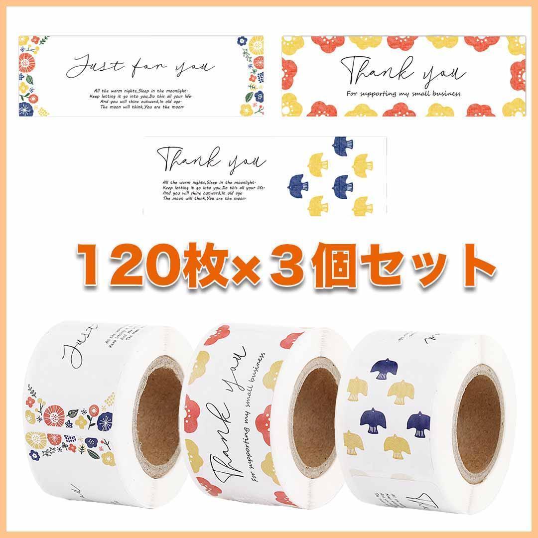 > サンキューシール 360枚 ギフト シール 3個 セット プレゼント 誕生日 発送 シール Thank you スクエア 横長 文房具 かわいい ラッピング