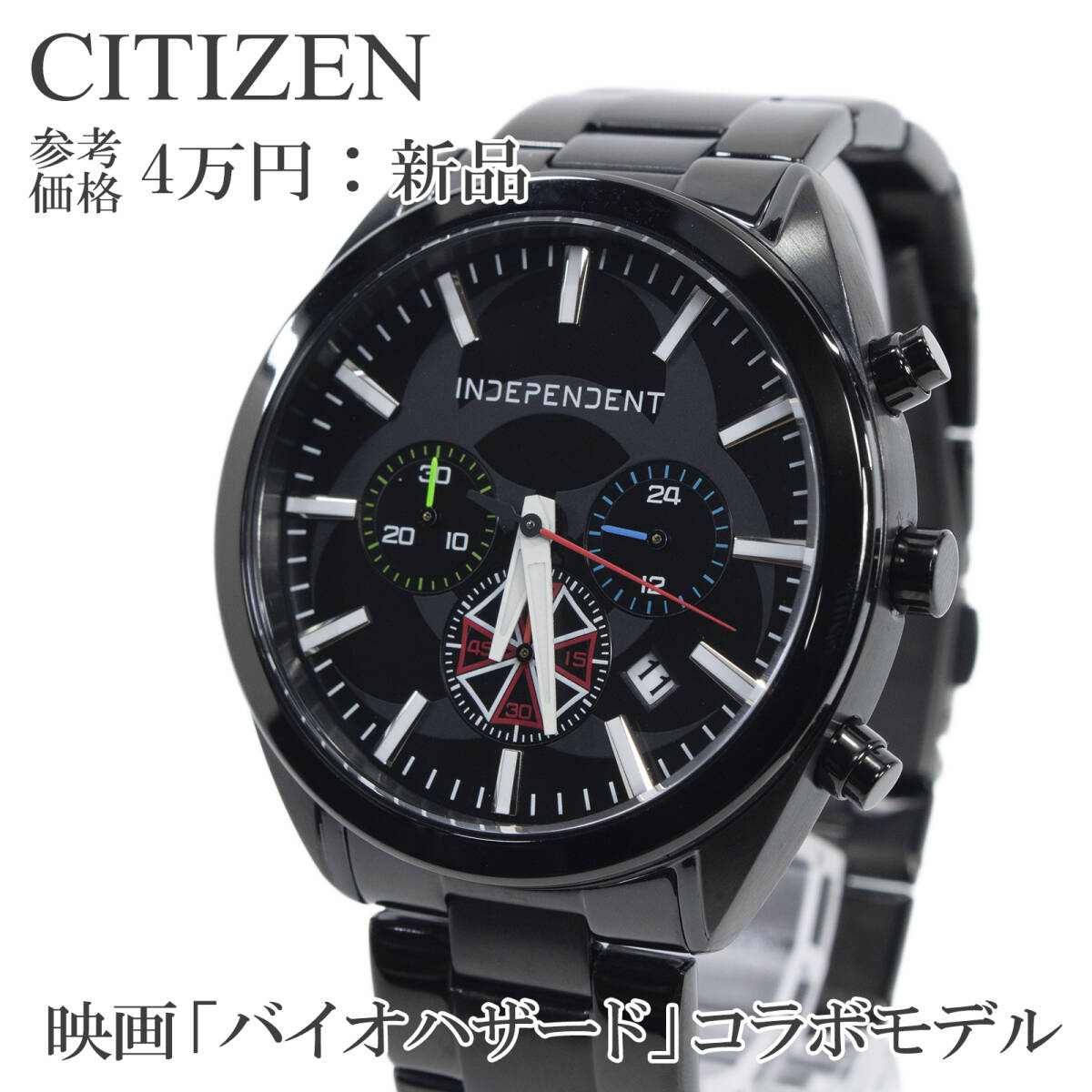 - 送料無料 シチズン 腕時計 新品 メンズ INDEPENDENT 映画「バイオハザード ザ ファイナル」コラボ 黒 白 赤 青 クロノグラフ 珍しい X133