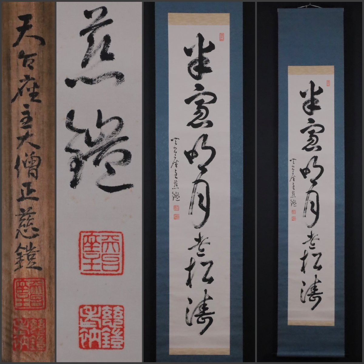 > 【模写】吉】12019 渋谷慈鎧 書「半窓明月老松涛」 共箱 天台宗初代管長 天台座主第249世 仏教 茶掛け 茶道具 掛軸 掛け軸 骨董品