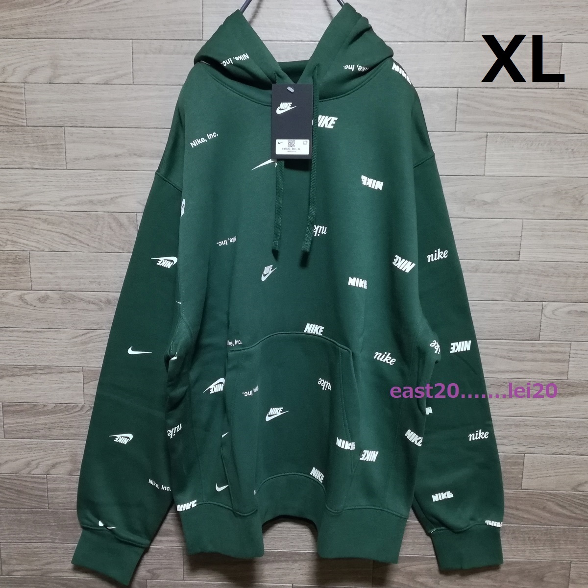 > XL 新品 NIKE ナイキ クラブ Futura フューチュラ スウッシュ ゴツナイキ スウェット フリース フーディー パーカー 緑 未使用 送料無料