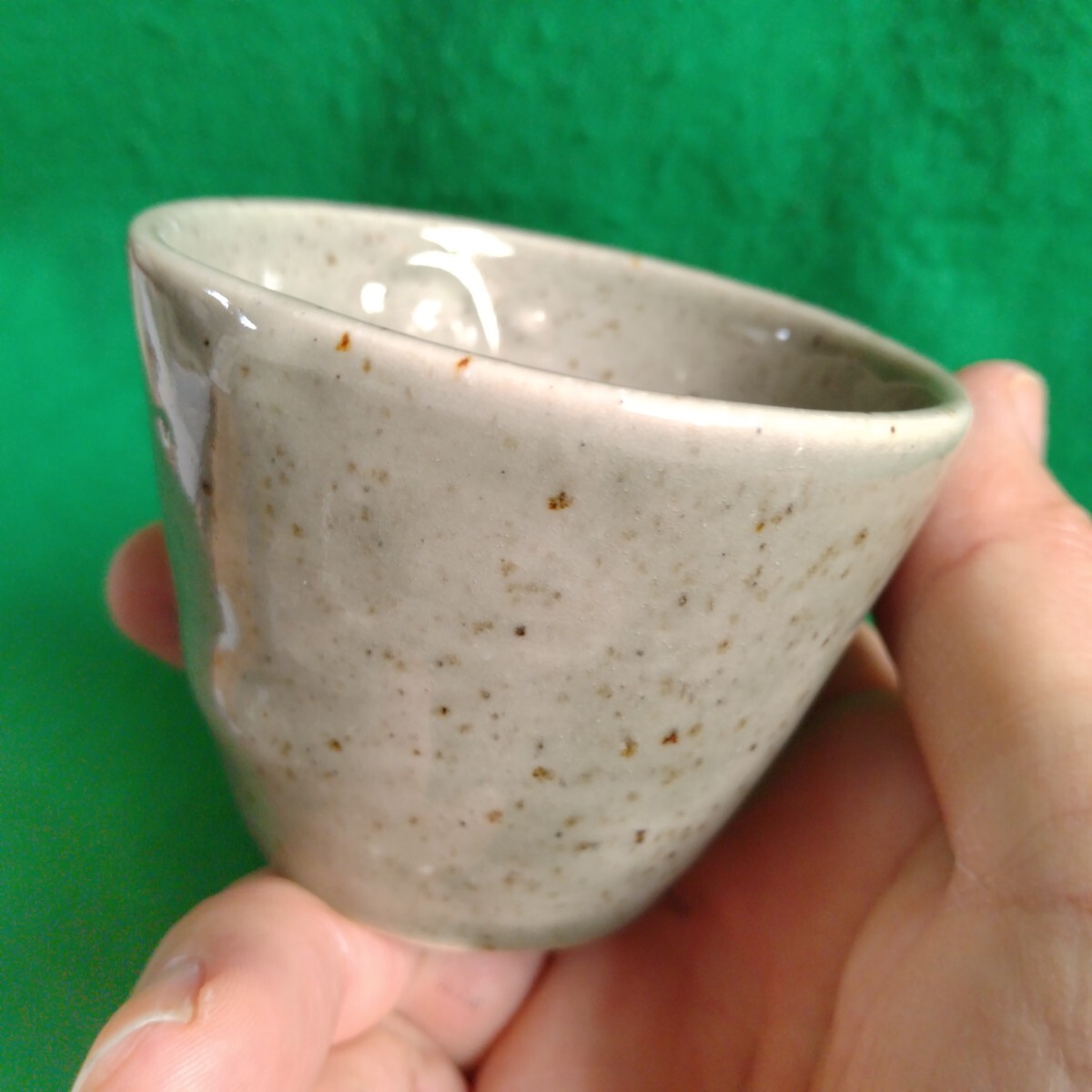 - ⑤発掘品?窯傷多い・参考品●北大路魯山人?星岡窯印?青磁猪口★底にザラツキ・火膨れ・ひっつき・釉剥げ★星岡茶寮★実物はもっと濃い色