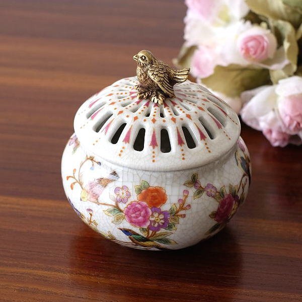 - 陶器 小物入れ おしゃれ シンプル 真鍮 蓋付き ボックス シノワズリ 陶器の蓋付きラウンドボックス バード 送料無料(一部地域除く) ebn9304