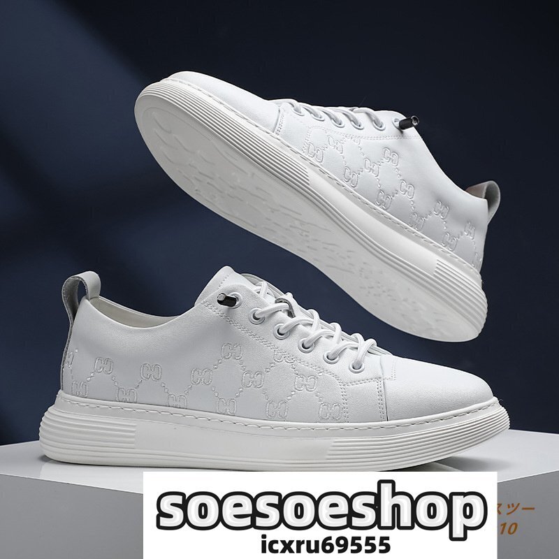 - 新入荷 スニーカー メンズ 白 牛革 レザーシューズ 本革 ウォーキングシューズ 厚底 疲れにくい 超軽量 男女兼用 トレンド 快適 26.5cm