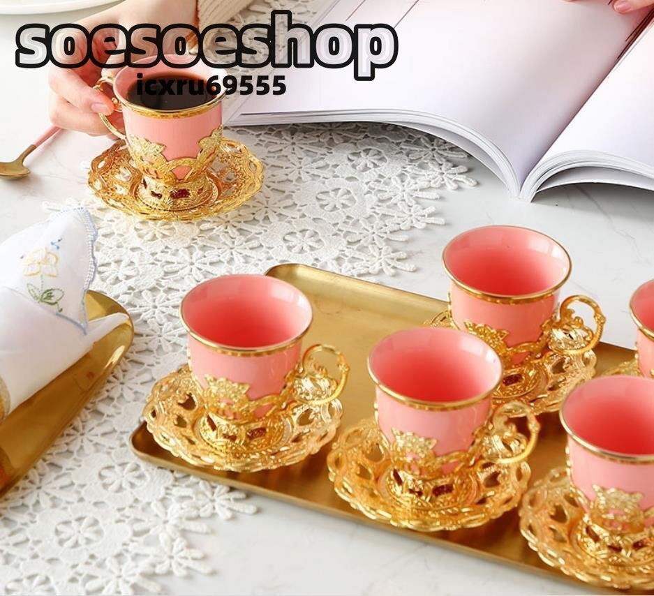 - トルコ 手作り セラミック カップ&ソーサー 12点セット 洋食器 アフタヌーンティー 紅茶