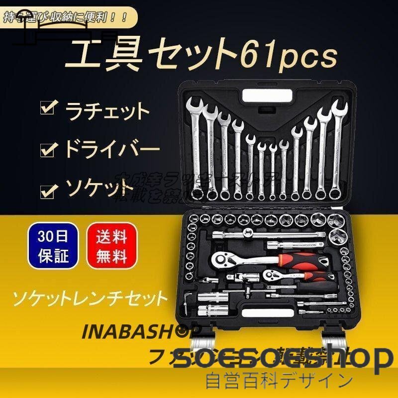 > 超人気 61点セット 工具セット バイク 自転車 パーツ ソケットレンチセット 修理 整備 DIY 便利 簡単 タイヤ交換