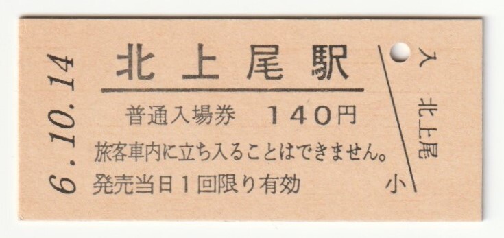 - 平成6年10月14日 高崎線 北上尾駅 140円硬券普通入場券(日付印刷)