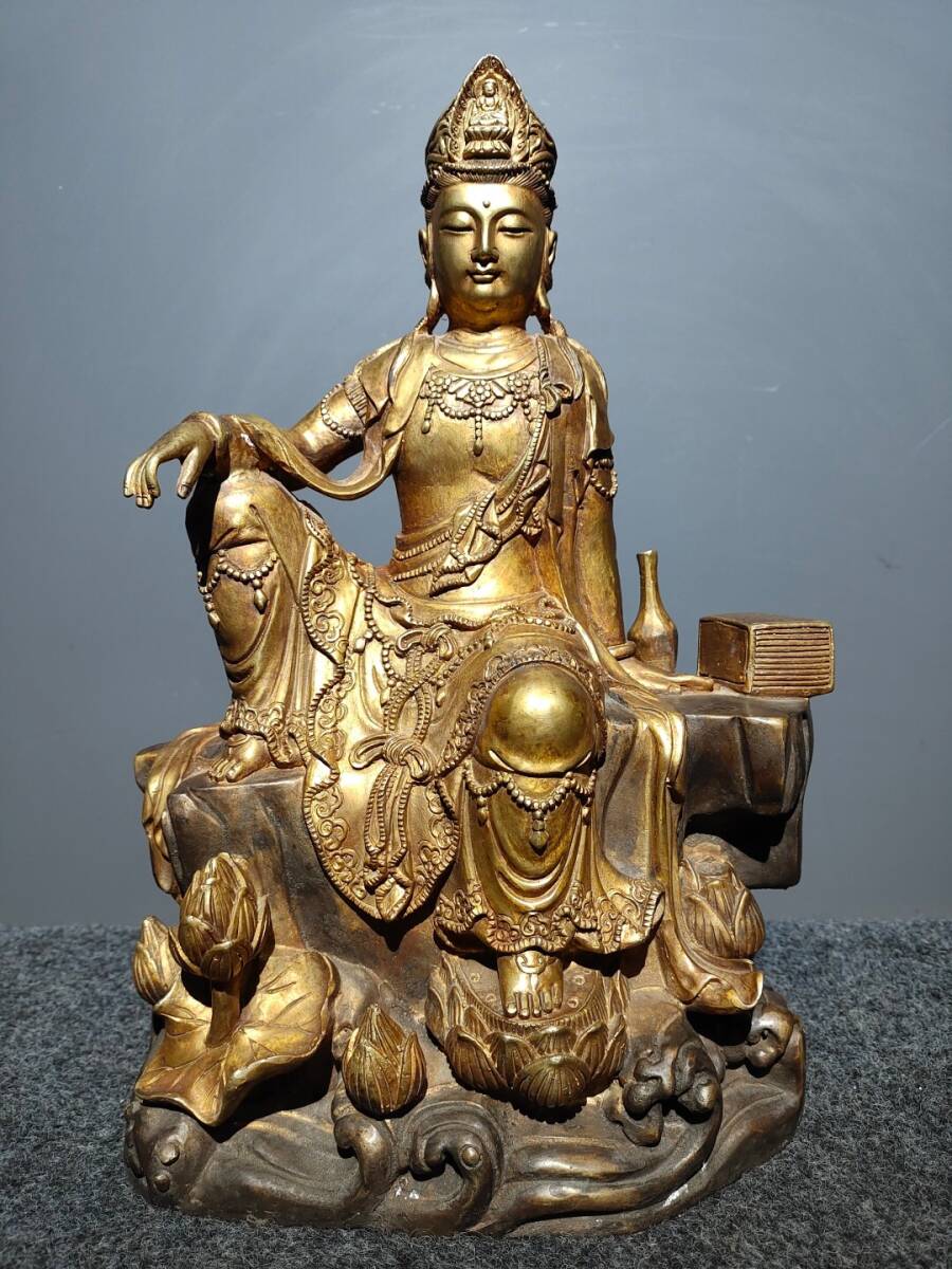 - ▽鴻▽ 銅製 塗金 自在觀音像 置物 古賞物 中国古玩 中国古美術