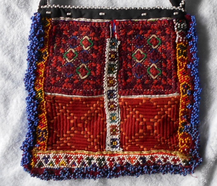 - アフガンビーズバッグ③ (ピンク紫オレンジ横青ビーズ)ヴィンテージ 古布刺繍リメイク ハンドクラフト アフガンアンティークショップバック