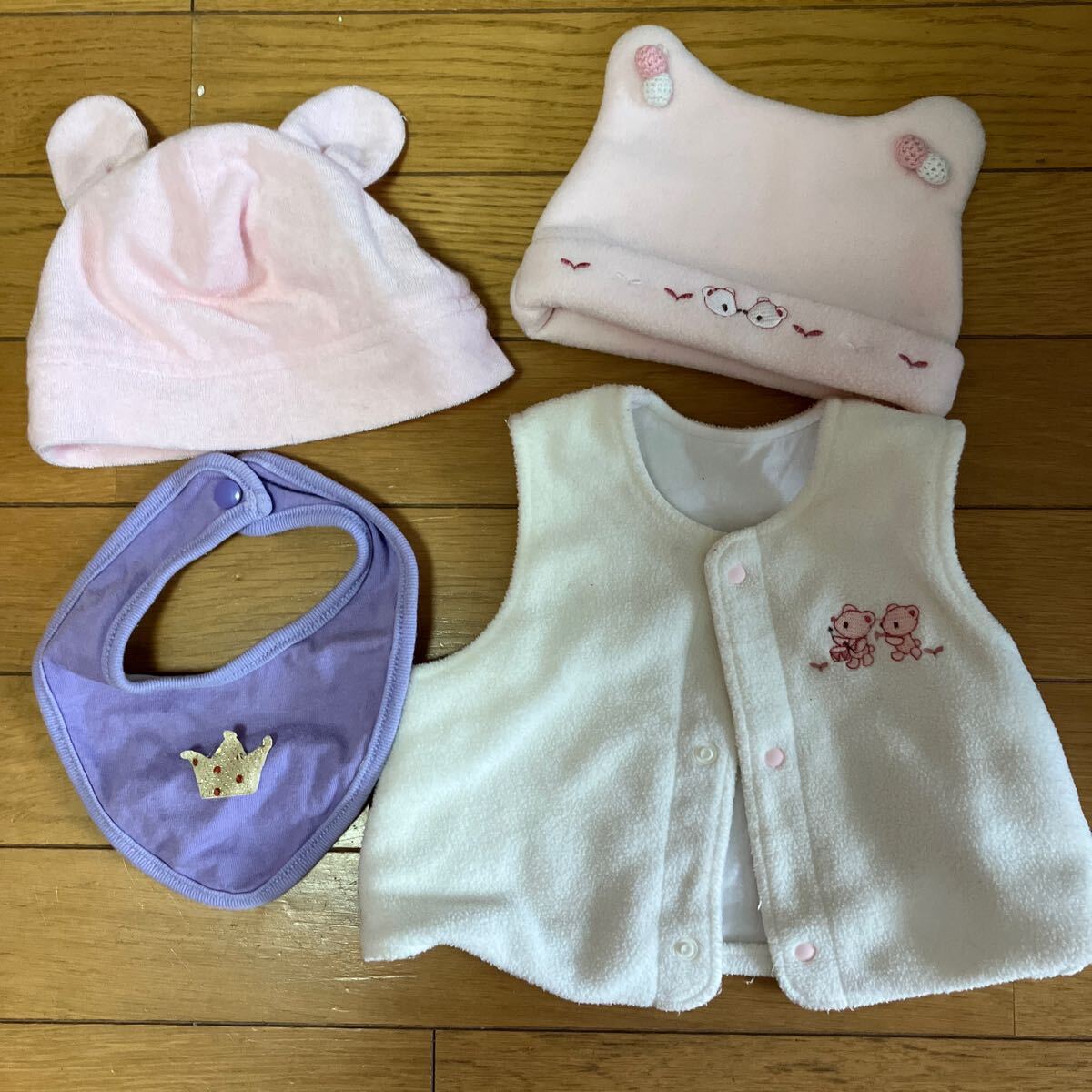 - ボンアミー新生児用ベスト、帽子、レモール帽子44センチ、リバーシブルスタイセット