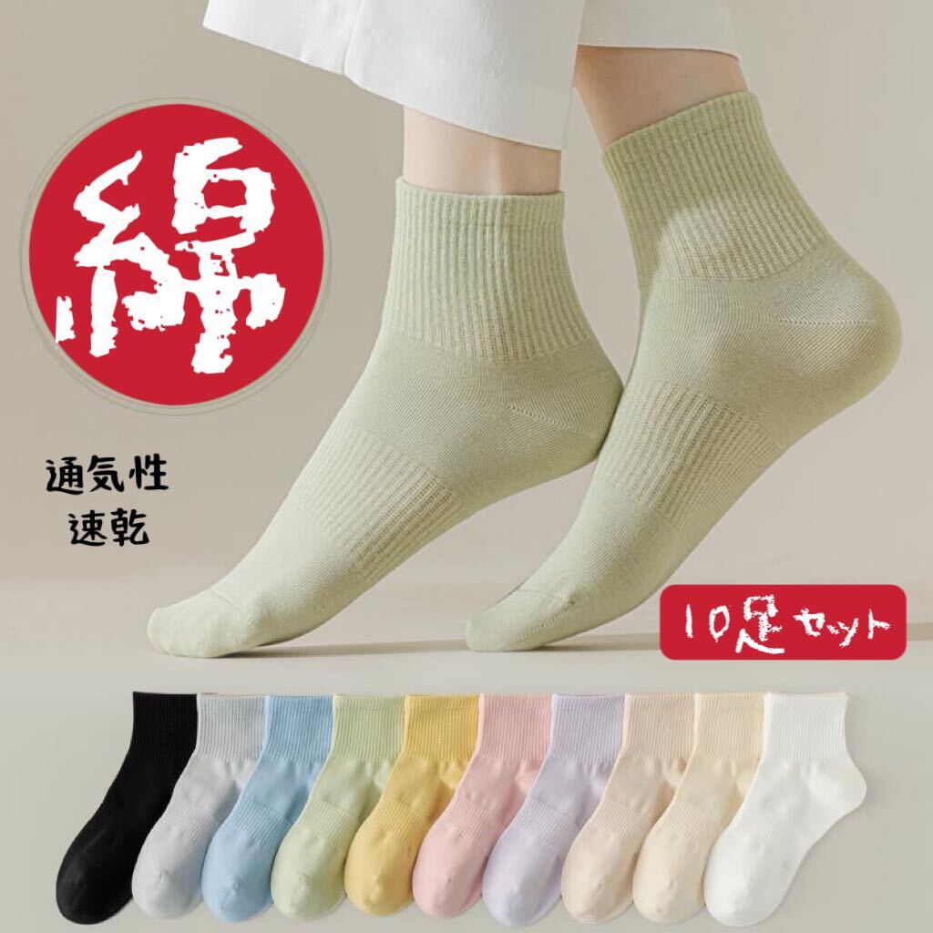 - レディースソックス 韓国 通気性 10足セット オールシーズンスニーカー シンプルソックス ロング まとめ売り 女性靴下
